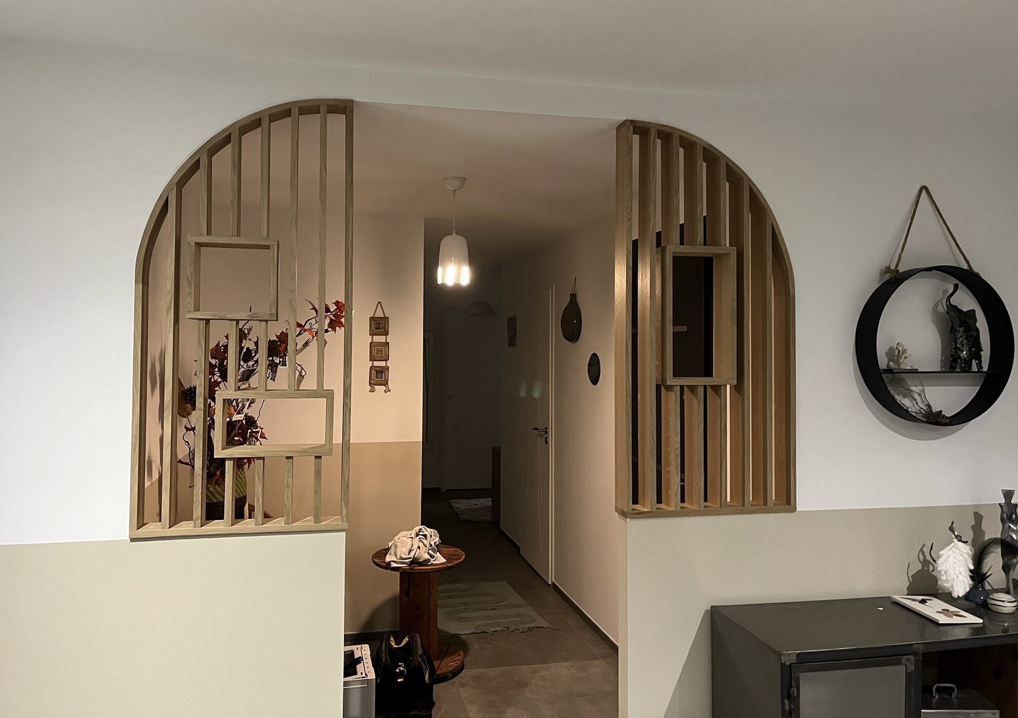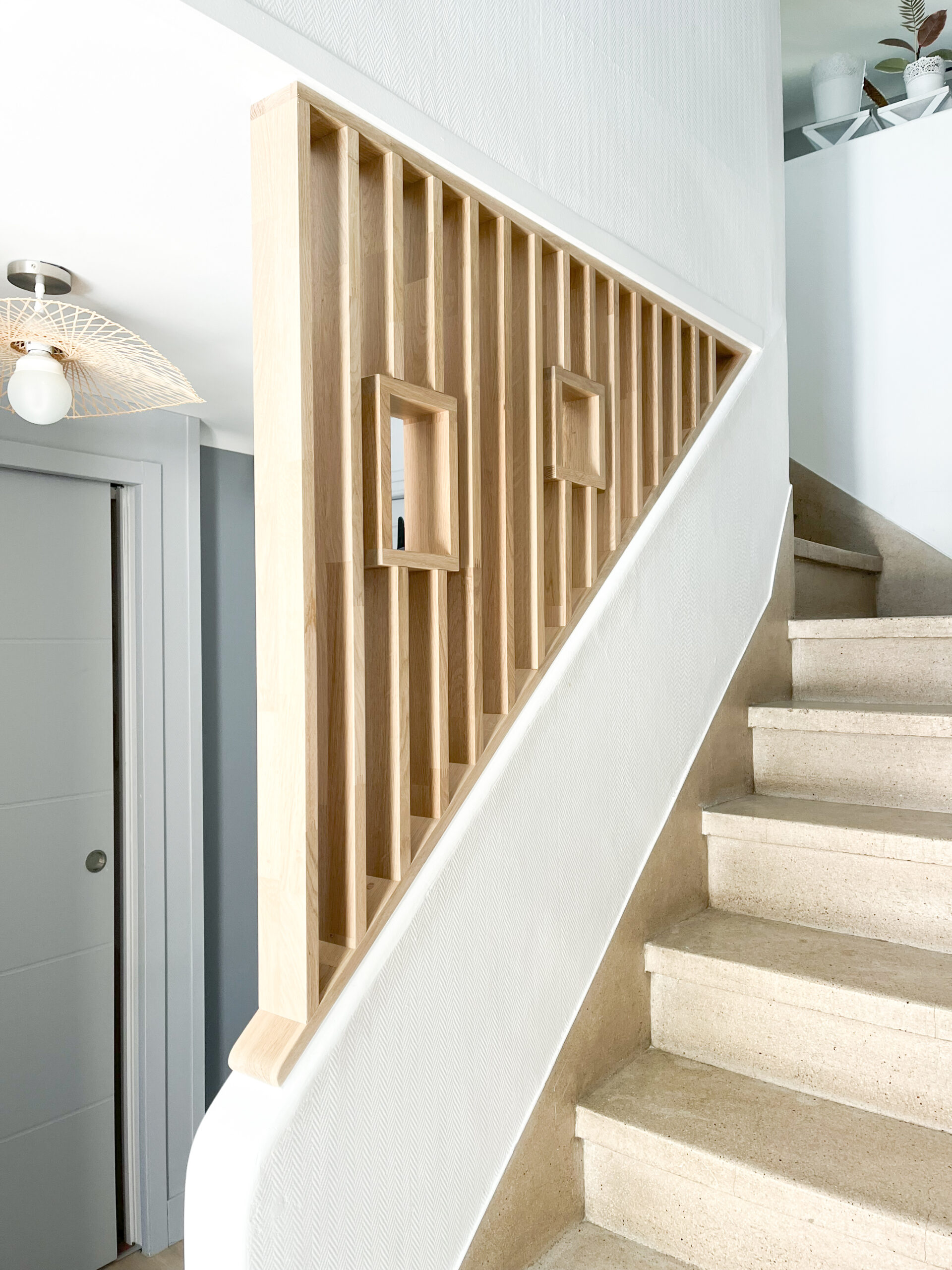 Claustra d’escalier La MUSCADETTERIE – le bar Table basse FLATIRON Meuble hi-fi TRACKS La MUSCADETTERIE – meubles de présentation Double claustra Buanderie fonctionnelle et esthétique Bureau ARONDE